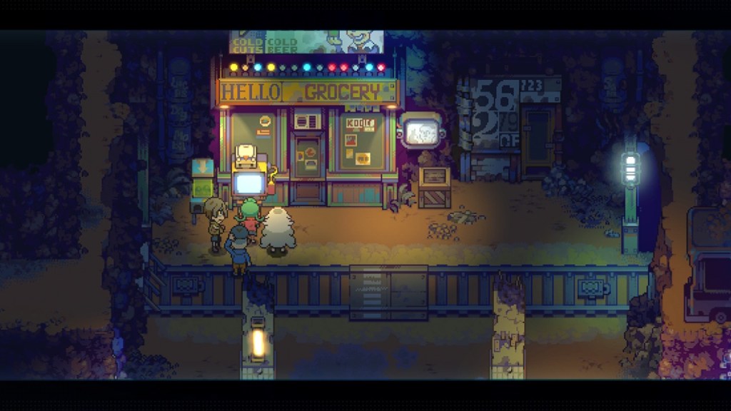 In addition, John and Sam can collect tokens to use in gachapon machines outside of the Earthborn game in order to receive Earthborn figurines that give you items in the game. These items include potions to heal your party, increase stats, change the shop’s inventory for the day, shop coupons, and more. These items from the “real world” gachapon figurines can be reused in each playthrough. Within Earthborn, you are able to purchase different items each day. There are unfortunately no options in the shop for healing items, so you must rely on those received from the gachapon figurines. Whether or not the shop stocks good items throughout your playthrough comes down to luck, and your party members’ abilities change between playthroughs as well. The different abilities and equipment can be the difference between winning and losing, but you’ll lose a lot more than you win against the Demon King. Your best bet is to get to level five, which is when your characters learn the best and most powerful moves. It’s easiest to do this by challenging the cave dungeons across the map. I managed to defeat the Demon King by the end of Chapter 3 in Eastward. It took me many tries (about nine hours of separate playthroughs), but I figured it out. It’s a really neat, unique addition to Eastward. Earthborn in the world of Eastward consists of not only a game, but a TV show as well. The world building in Eastward is really impressive to me.