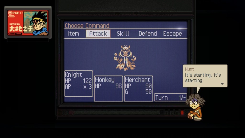 As John and Sam travel around, they meet a variety of characters that they help in some way. Sam often cajoles John, the silent protagonist, into helping others (if she doesn’t run off and attempt it herself first). The game allows for some downtime of sorts in each chapter before things get serious. One way for you to spend some of that time is by playing Eastward’s in-game turn based arcade RPG, called Earthborn. In Earthborn, you play as a nameless knight who tries to save the princess from the Demon King. You must gather other party members to help you in your quest. The game gives you one week to prepare your party for battle with the Demon King. If the knight is defeated, it’s game over. You do not keep any levels or items for subsequent playthroughs, but you do keep the party members you have gathered as well as the teleport points you have activated.