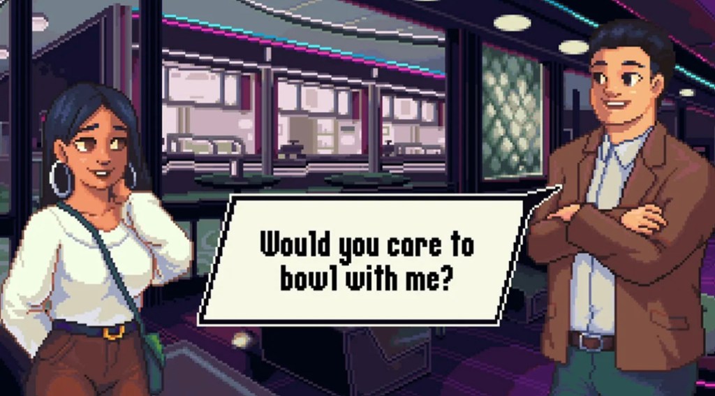 Bowling is a much beloved pastime for many people, with bowling league tournaments and parties held at bowling alleys. Some like to go bowling with their friends, but others “pin” (😉) their hopes on bowling helping out their love lives! In Date Night Bowling, you’ll choose from many different options to customize your experience. Choose your player and their date, and impress your date with your bowling skills and your (hopefully smooth) lines!