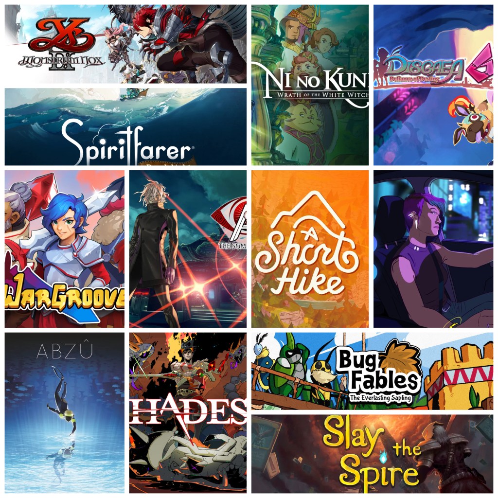 These are games I see recommended over and over again in Reddit threads on Switch game recommendations. They’re highly acclaimed games that I’m planning to play at some point. Hades seems to have won a large amount of well deserved awards since its release, and Slay the Spire and Spiritfarer are extremely popular as well. Ys IX and Disgaea 6 both came out in the last six months, and a sequel was just announced for AI: THE SOMNIUM FILES.