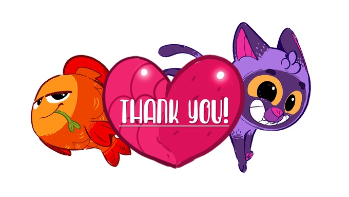 Frenzy: “One day, I came back home and I said okay, let’s do a couple of drawings, and this is when everything started to click. So I remember I’d done this really, really bad drawing about a cat on a little platform – a little piece of wood – and a little fish that’s dragging him in the water. And we said, oh, that could be a nice thing for a game. Like, why don’t we try and experiment? As you can see, we like the idea of having cute animals. So, this is where everything started – the first name was Cat & Koi, but we said okay, no, we are gonna change it, and also, the subtitle is A Friendship Story 2021.”