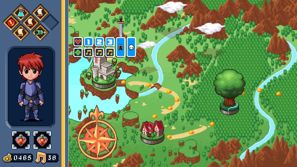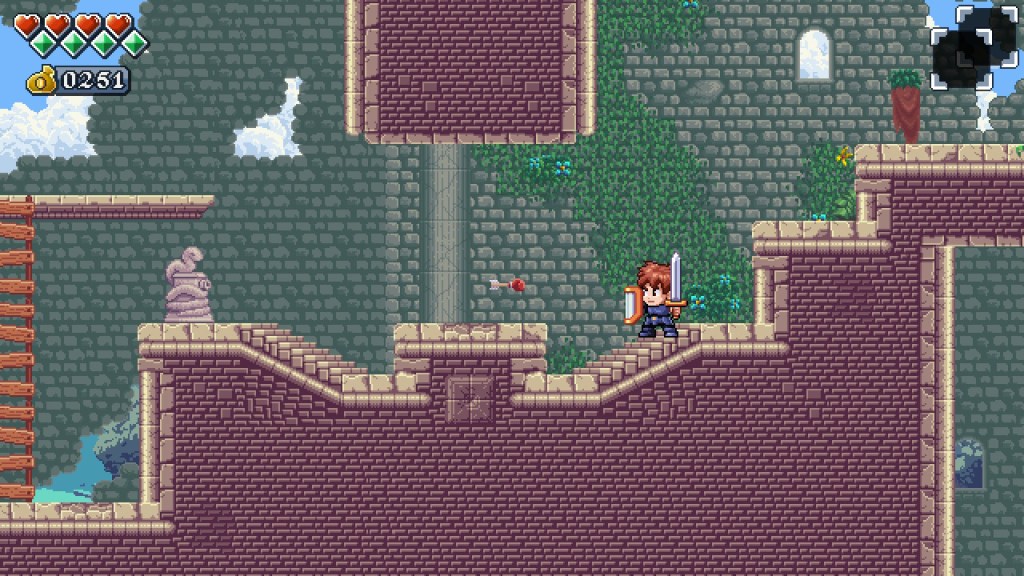 You will unlock a village area early on, which will allow you to purchase potions, extra lives, heart pieces, and more. I was initially quite confused, as you earn coins but I didn’t understand how to access the shop at first.