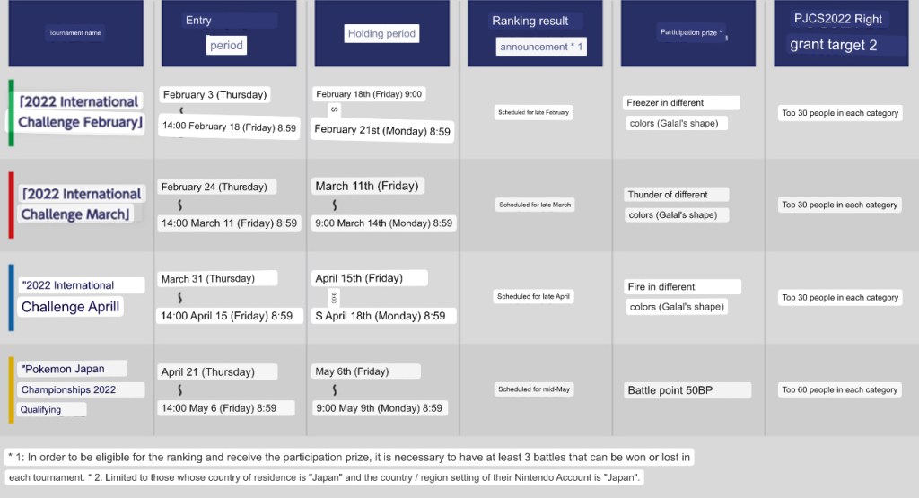 (Please note that the times and dates will be a little off due to the time differences between your country and Japan as listed above.)