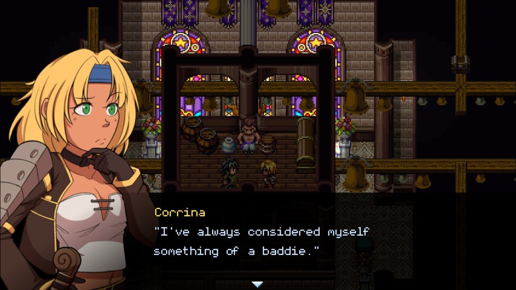 Corrina and Rowan have some interesting skills. Corrina seems to focus a lot on weakening enemies by making them fall asleep or giving them the “bleed” status effect. Rowan uses “Booze” to heal his HP and increase his attack and defense (which may not be the best message to send).