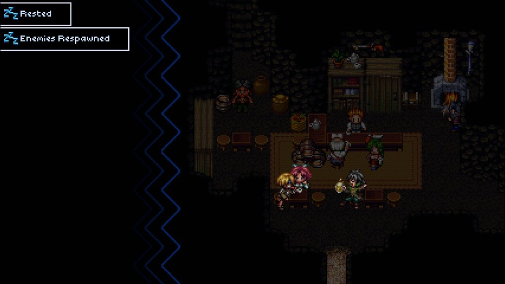 The enemies don’t reload until you sleep at an inn or ask the traveling merchant to respawn them. They all appear on the overworld – but only within dungeons and not on the world map. There aren’t random encounters surprising you in this game, which I liked. I also very much appreciated that they included warnings before you enter an area where you will fight in a boss battle, allowing you to save before proceeding.