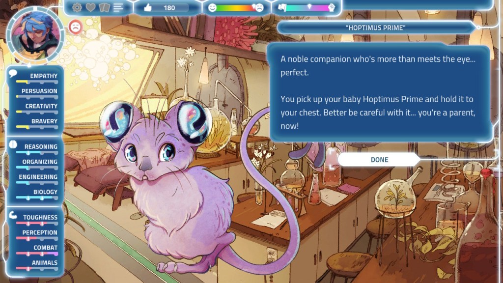 The developer posted in the game’s Steam community that they’ve worked on this game for 5 years. And to me it really shows with the amount of content. Even by my seventh (!!!) playthrough I was still seeing some new events I hadn’t seen before. I’ve always loved the new game plus function in games, and I’ll usually play in NG+ mode immediately. I don’t tend to replay a game more than twice in a row until more time has passed, but I Was A Teenage Exocolonist really “sent me into orbit” (haha because space) and made me want to play it over and over again to discover what I’d missed before.