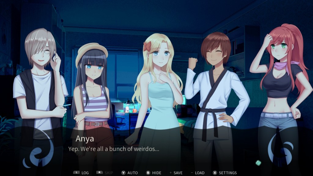 I felt that overall, the quality of the writing was pretty good – I just wanted a bit more of it. Initially, when you complete a route, it will seem like it cuts off before some plot lines are properly concluded. But once I finished all four routes, I went to the main menu and clicked on “Memories,” which took me to a concluding arc with Anya. I didn’t love the way that one of the storylines ended in this conclusion, and thought it also would have been nice to have different concluding arcs for each of the four routes. There were a few side characters that I wanted to know more about, such as “Mute” and the gatekeeper (I had some suspicions regarding the gatekeeper that were never answered). However, I did enjoy learning what I did about some of the main characters.
