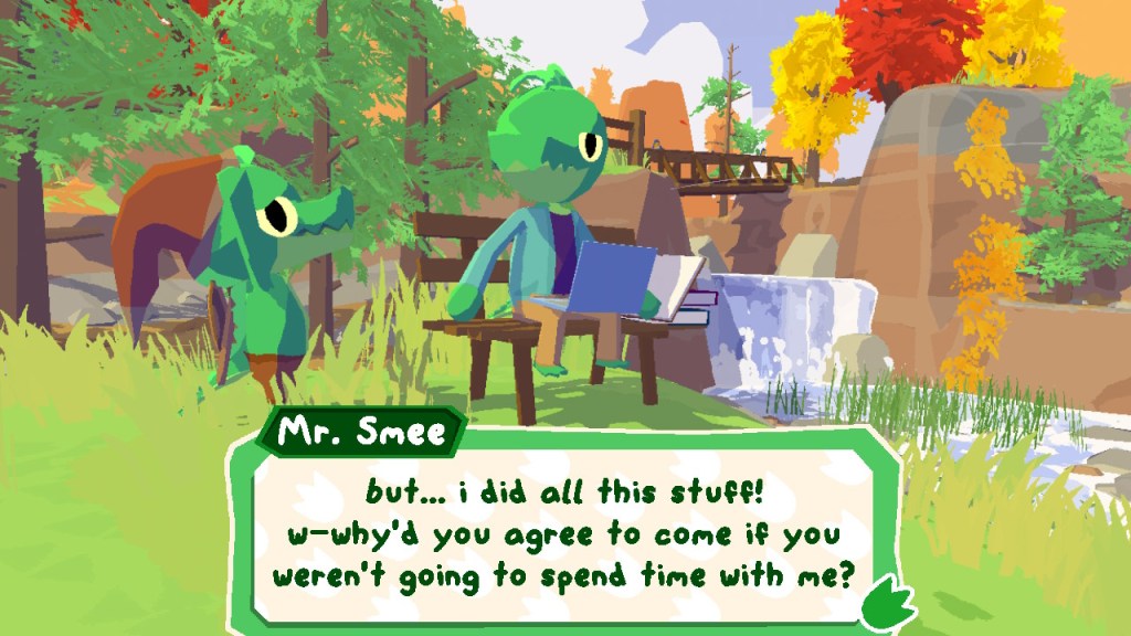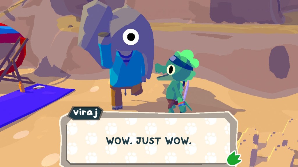 I really liked Lil Gator Game’s themes; I think they’ll strike home with adult and child players in many ways. There’s a lot of emphasis on your friends having other friends and interests, and being able to blend those interests by working together and compromising. The importance of communication is another great theme, as well as the way that adult responsibilities can often get in the way. On the surface, this is indeed a cute and wholesome game, but it’s also pretty deep. The children in the game went through a lot of trouble to create a massive cardboard monster army to cover the island. And just like those kids, the developers clearly put a lot of heart and effort into Lil Gator Game.