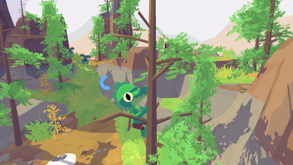 Sometimes the large amount of tall trees made it harder to see where I needed to go, and the game lacks a map that could have made it easier to find my way around. It also took me a while to figure out how to get higher up on certain trees due to some of the limbs, and some mountains due to the rockier sides. These activities may not seem very safe for unsupervised children in real life, but as one of the characters says, “in video games, children are invincible.” 😂