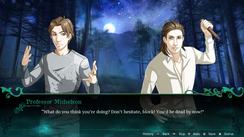 Unfortunately for Mark, he isn’t given advance warning about the whole vampire thing; Professor Michelson had planned to ease him into the idea of being turned, but a rogue vampire attacks Mark and moves the schedule way up. Due to the society’s strict code, Mark must agree to be turned or else he will be killed. He’s not too happy that his choice has been taken away from him, and your choices over the course of the story can either reflect his acceptance or his regrets.