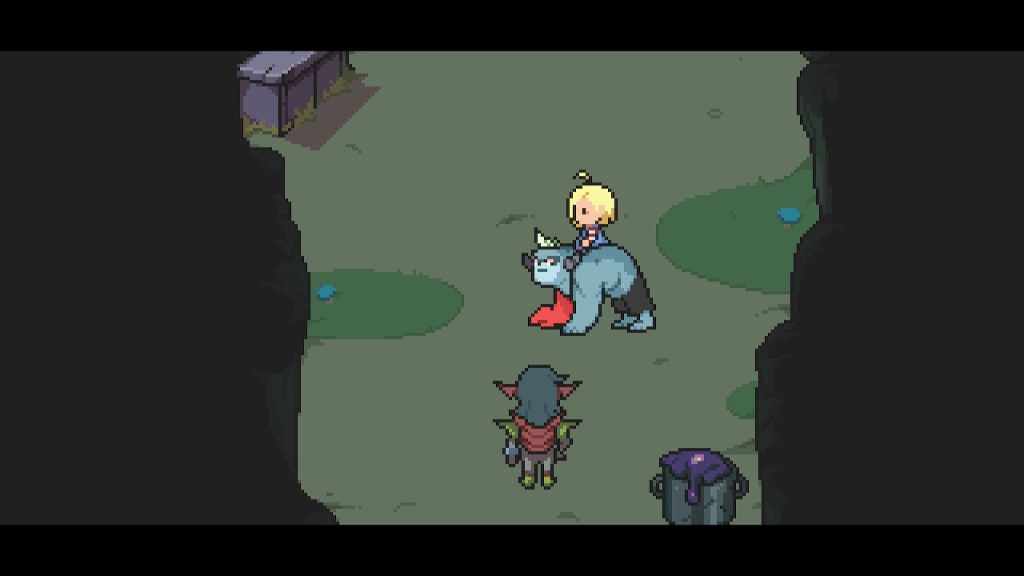 Once you defeat the ogre that tried to take Meg, Golan figures that they’ll have to take her home with them since her mom is nowhere to be found. He desperately wants to placate her to prevent her from crying again: “For now, let’s just do as she asks, and try our best not to set her off!” He suggests giving Meg toys to keep her happy and calm, because he’s heard they use them as distractions in the human world. They go to the salvage yard for that, “where stuff from the human world comes tumbling down for whoever finds it first.” When Meg’s happiness meter gets low in battle, use the Toys command to restore it.