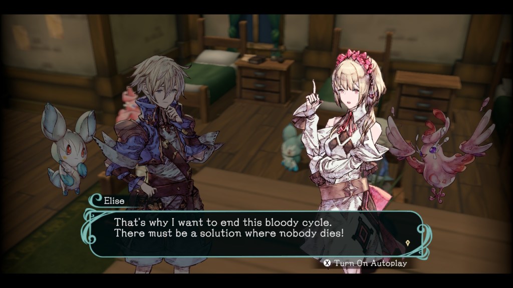 What was disappointing for me was the lack of personality in the majority of the NPCs in towns. When I fast traveled back to a previous town to complete a side quest there, I’d read the exact same dialogue for an NPC regardless of where I was in the plot. And speaking of the plot, it definitely had the potential to be interesting. Cyan, Elise, and Zantis were pretty likable protagonists, but I’d say most of the interactions in the game were just between them (and their Triggers).