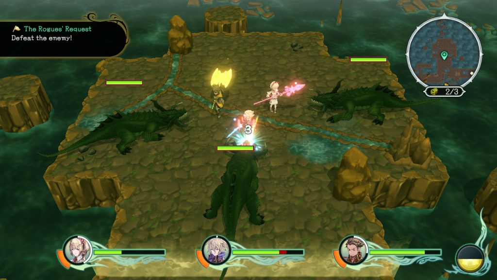The character you are controlling will display what is known as the Synchro Gauge; your attacks decrease the gauge, and once it’s been drained all the way the damage you do goes way down. Honestly, I didn’t love this mechanic because I’d have to wait until the gauge filled back up to attack again.