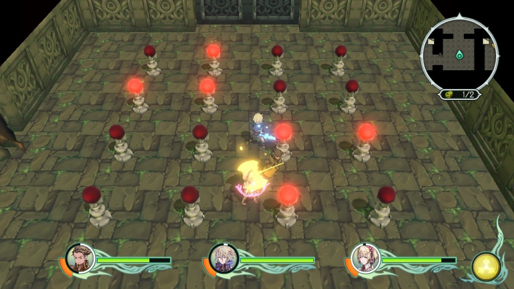As you try to locate the people who are after Cyan, you’ll travel from town to town and visit any Armas that are close by. In between those towns (and in Armas), you’ll face more than just monsters. There are also environmental hazards to watch out for in the screens where combat occurs. An Arma may have arrow traps, or plants in the wild might hit your party with status effects if they’re destroyed. Armas also contain some basic puzzles that you’ll need to solve.