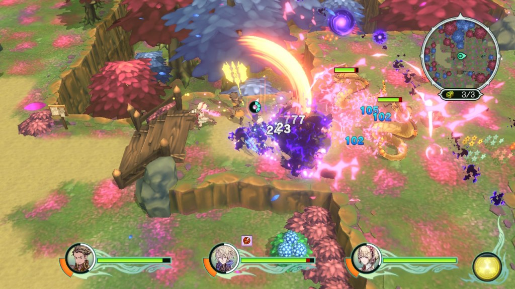 Besides the Trigger Attacks, weapons also have different uses when you fill and activate their Weapon Aura Gauge. Once you have all three party members, you can use the powerful Trinity Impact attack as long as all three characters are still able to fight. You can easily swap between weapons and/or characters mid-battle with the press of a button.
