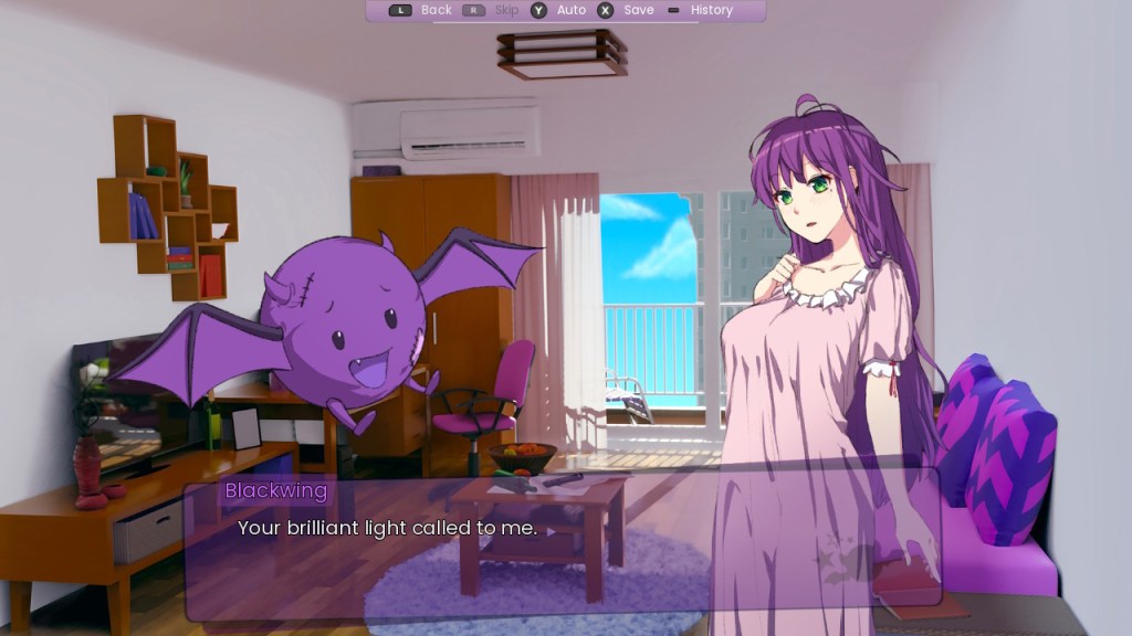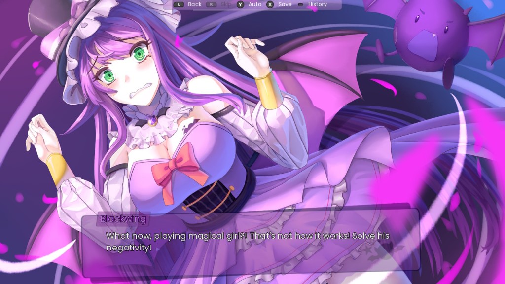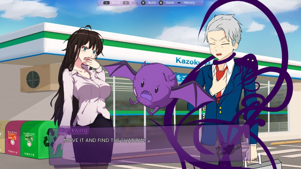 Kuroi Tsubasa (or “Black Wing” in Japanese), is a visual novel in which Blackwing the devil decides to leave hell to check out the human world. The only problem is that his “evil shadow side” separates from him somehow and starts causing trouble in the human world. Blackwing can’t stop his “evil shadow” alone, and recruits office worker Kureha and her new friends to help defeat him.