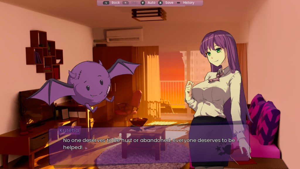 Kuroi Tsubasa is a 120,000 word linear visual novel, and I enjoyed my time with it. Sometimes the English wasn’t perfect, and there was a frequent lack of possessive punctuation and capitalization of proper nouns. I was also a little confused about how Blackwing’s shadow separation worked. But nothing was incomprehensible, and I think they did a decent job of developing a plot with a good balance of comedic and dramatic elements. If you enjoy visual novels with an emphasis on the power of friendship, this may be for you.