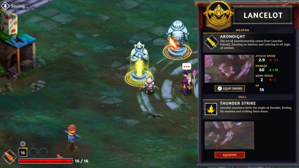 The bosses were all pretty challenging for me the first few runs – until I got a hang of their attack patterns. Be prepared to lose a lot at first! They got the best of me several times, which sent Arthur back to Camelot via the “Merlin Express.” Upon your return, you can speak to any rescued citizens to see what they need repaired.
