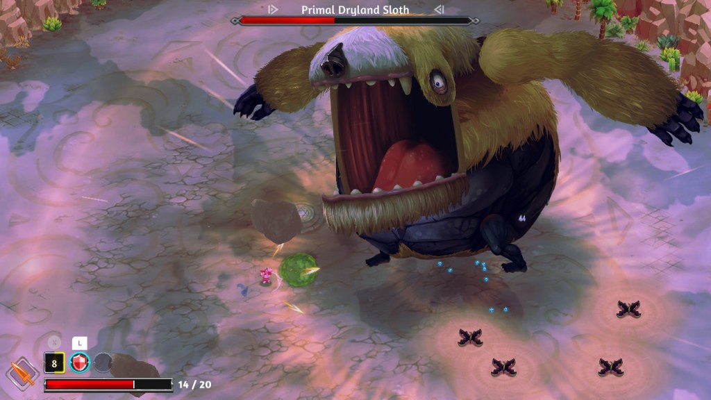 They do alternate mini bosses for each biome, at least. The major bosses stay the same. I liked the enemy designs – especially the second major boss, who reminds me of one of those Minions. They’ll do their best to defeat you by throwing boulders, summoning monsters, spawning thorns, and more.