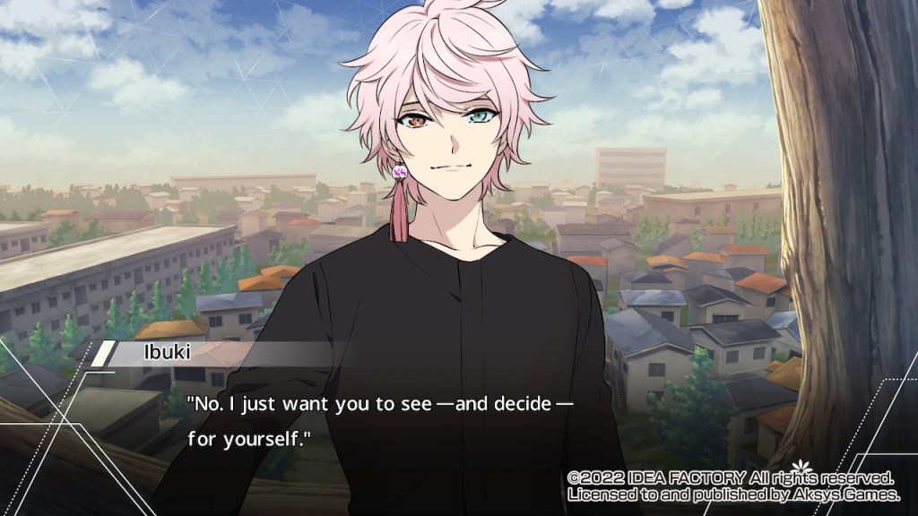 Hyuga is 24 years old to Yuuki’s 16, so I’m already uncomfortable starting his route. On the plus side, I didn’t see much in terms of romance with him. He’s also pretty violent and has mood swings, and he’s very disdainful of Yuuki, the Blooms, and humanity in general. The “mother hen” aspect of his personality is cute and funny when it pops up, but I’d pass on Hyuga personally.