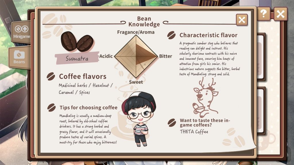I was intrigued by the idea of Sunny Café, a visual novel about a group of Taiwanese college students who gather in a local café. Players will learn more about the local culture, Taiwanese coffee, and the students. The choices you make lead to different endings – perhaps some characters will even espresso express their feelings for each other! ☕️