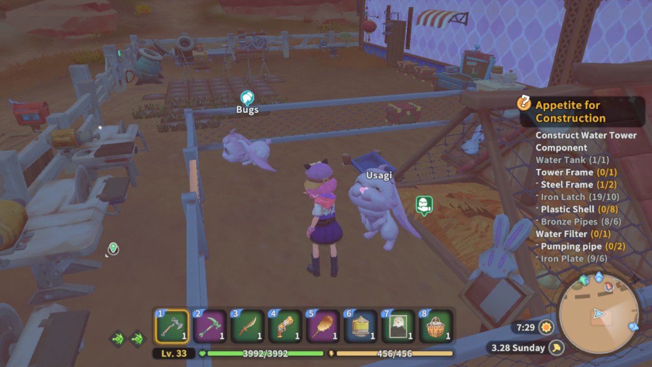 If you befriend certain animals in town, you can adopt them and make them your pet. They’re all really cute and you can ask them to gather materials for you. You can also plant crops in the limited space that you have; given that water is hard to come by, I was very pleased that the water and fertilizer last for several days.
