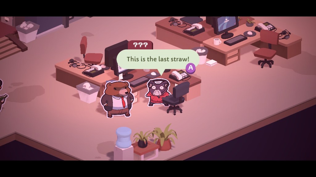 The office setting and the contentious relations between coworkers seemed pretty realistic. I think my favorite office worker had to be the cat character (who I won’t name here as that’s a part of a deducktion puzzle). She’s frazzled and overworked, and her voice actor did an amazing job of conveying those emotions. It was great to have a talented cast of voice actors bring the story of Duck Detective to life.