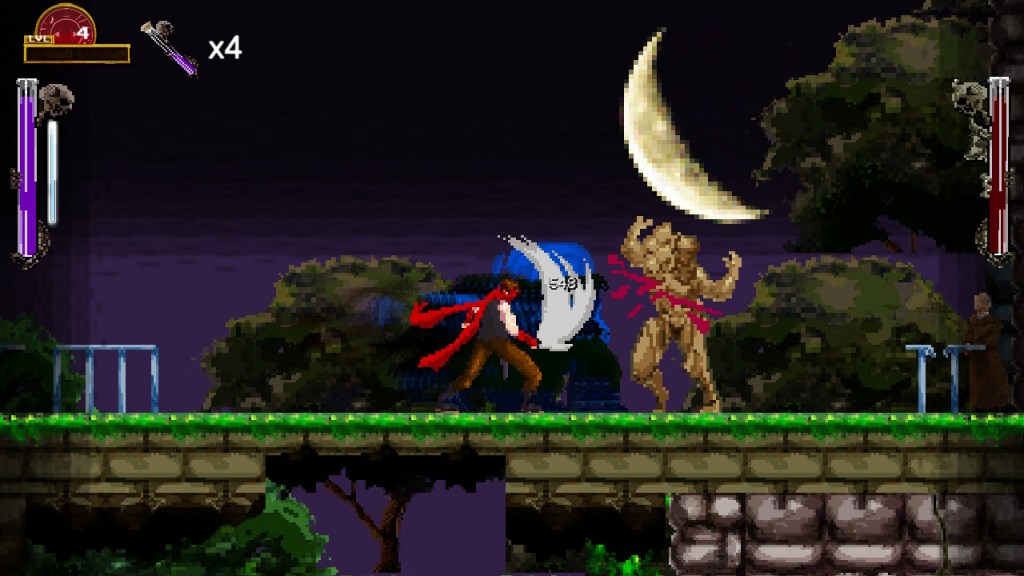 The controls for the action combat and platforming are simple and easy to use; you have a regular attack, special attack, back dash ability, jumping capabilities, and potions. You gain experience for each enemy you defeat, and monsters reanimate fairly quickly afterwards. I wouldn’t say that the combat is overly difficult, but that doesn’t mean you won’t die a few times.