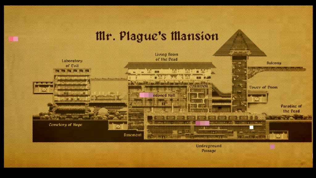 The game has a little bit of dialogue and storytelling, and includes some voice acting in what I believe is Tagalog? (The sound quality for the voice acting’s audio files could be a little better, but it’s really cool to have!) Anyways, as the man in the red scarf, you go to Mr. Plague’s Mansion to defeat Mr. Plague. But first you’ll have to fight your way through hordes of Filipino monsters and unlock paths that take you further into the mansion.