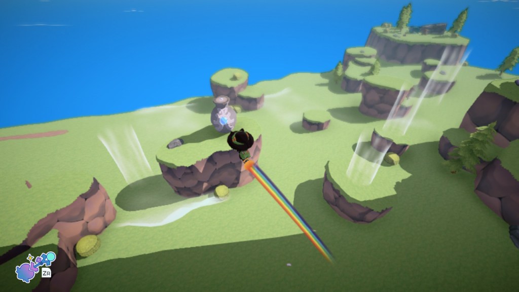 Once I got the hang of flying it wasn’t too bad. You get a new broom after finishing each day of deliveries, which comes with improved flight capabilities and extra package slots. Find special items that go onto pedestals to improve wind flow on the island as well.