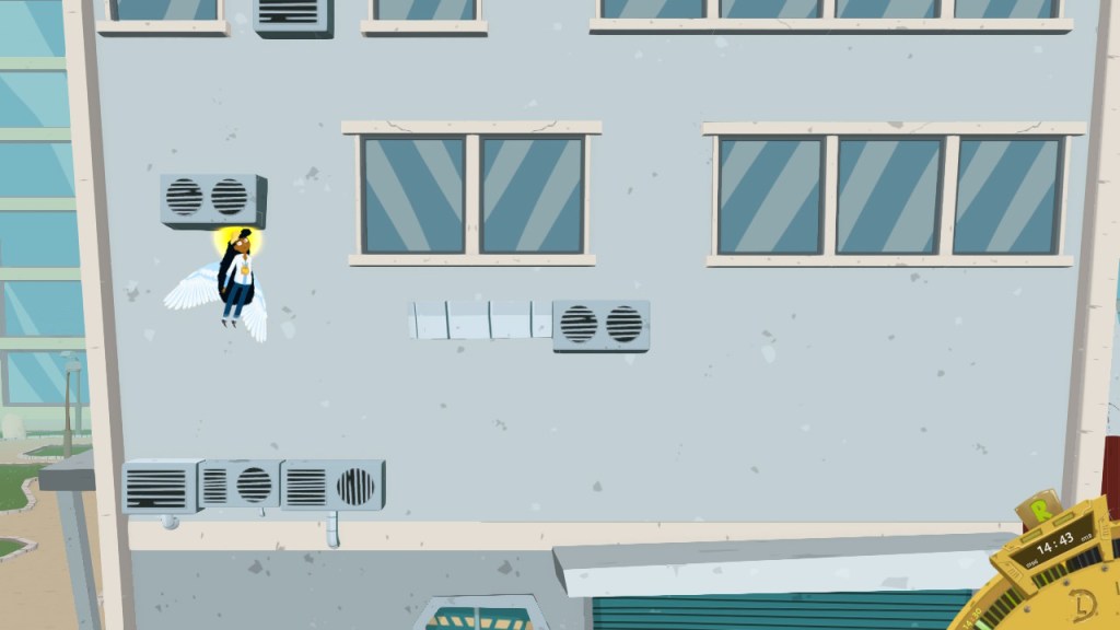 The mechanics are fairly simple when you only have to deal with people, places, and objects in Heaven. Eventually you need to travel to Earth, Hell, and other realms, which starts to complicate matters more. (They provide players with convenient fast travel options to speed things up for later time rewinds.) Additionally, some areas in each realm are inaccessible until you’ve completed enough of the Lord’s Work quests.