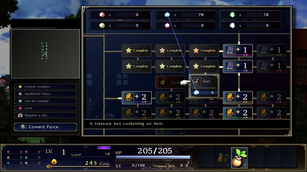 What’s great is that if you want to get even stronger before facing the next boss, you can return to the previous stratums to farm for Force and grind for equipment and magic experience. Although you start at level one each time you enter, you will continue to become a much stronger level one for when you start again.
