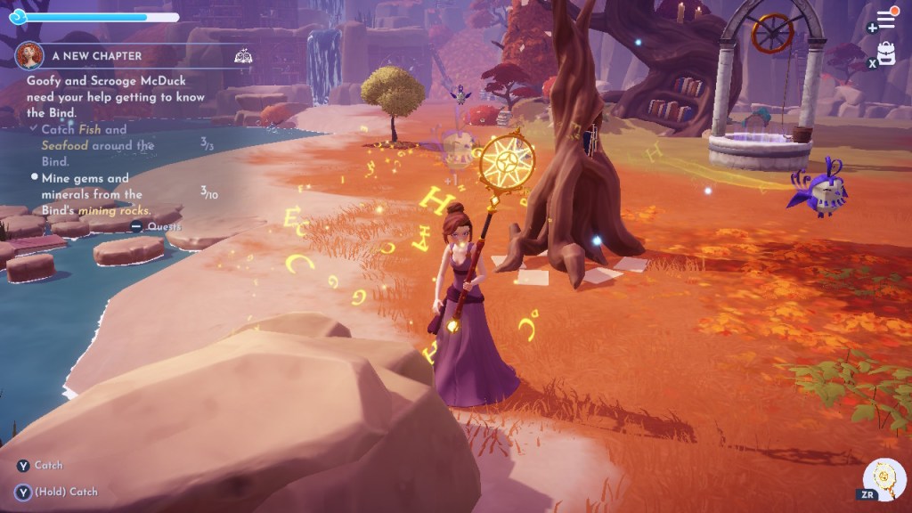 While it’s “a world sewn together from fables and myths,” the Vale is coming apart at its “seams” due to Maleficent and Hades’ spat. You have to remove a bunch of ink from the environment and catch story Snippets – little paper creatures – to restore some of the Lorekeeper’s power.