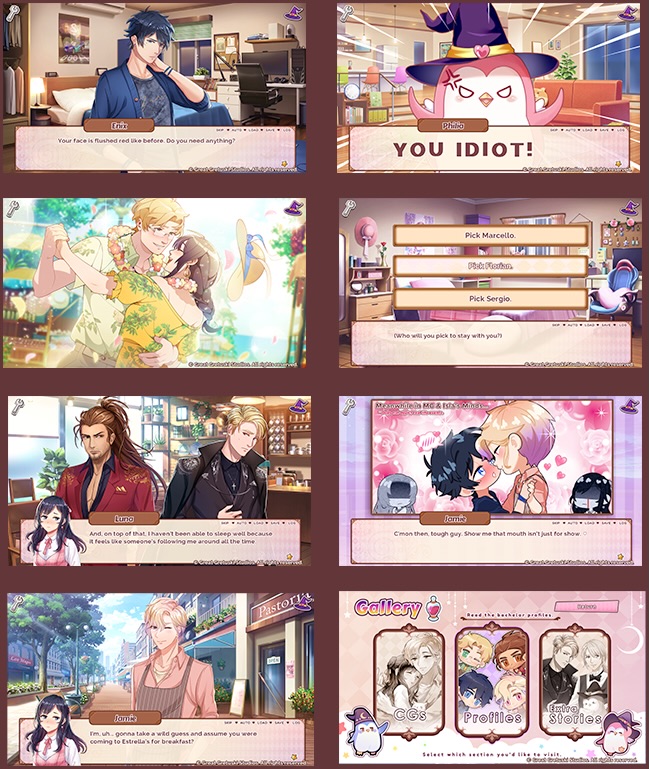 I’m intrigued by the concept and want to know what happens. Will the guys realize that they’ve been bewitched after the spell wears off? Do they actually fall in love with her based on their experiences under the spell? Enix, Marcello, and Sergio look the best to me at first glance. (I also adore Philia as a mascot!) I look forward to finding out the answers to my questions when the Switch port arrives!