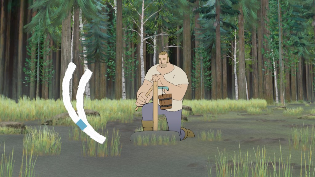 Without words, the game relies on beautifully animated visuals to tell its story. As the woodworker, you complete his daily chores – such as tending to his garden – using the joystick or directional buttons to complete each task.