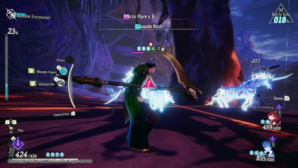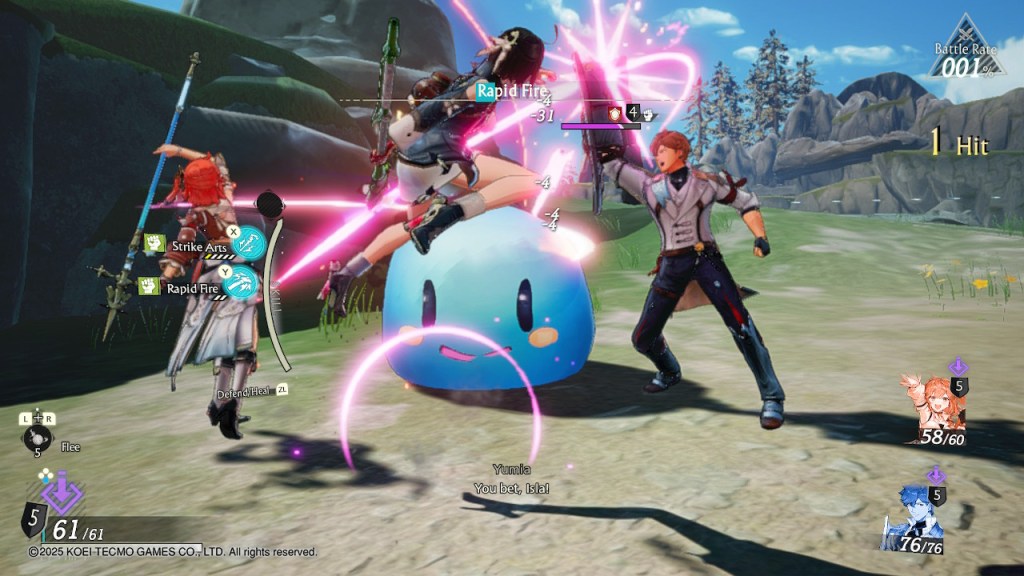 Sometimes you’ll find yourself briefly fighting a battle by yourself in split encounters, where enemies will be in different “battle circles” and your teammates won’t join your circle until they’ve defeated their opponent in that battle. I thought that was kind of a neat idea. There are also rumble encounters that have you face every enemy in the vicinity at the same time.