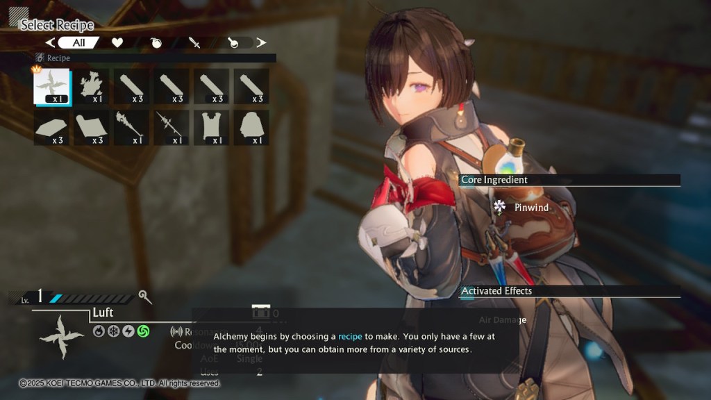 But what about the alchemy? In Yumia’s world, a being’s life force – and memories – return to the earth and are converted into mana after they pass away. You’ll find these particles out in the field, which allow you to unlock new synthesis recipes. It’s possible to level up most recipes using additional particles, which means that item will receive bonuses during synthesis.
