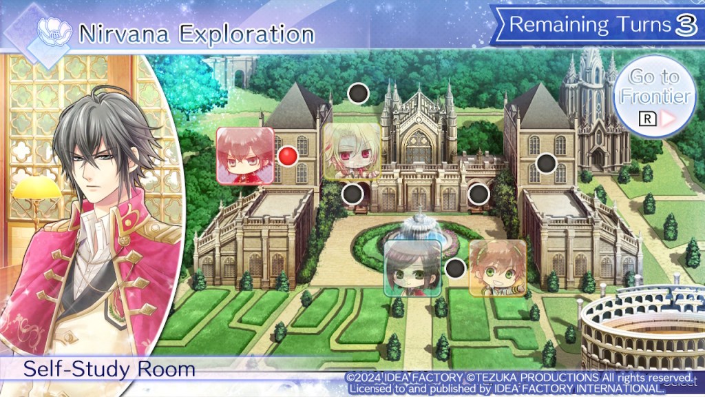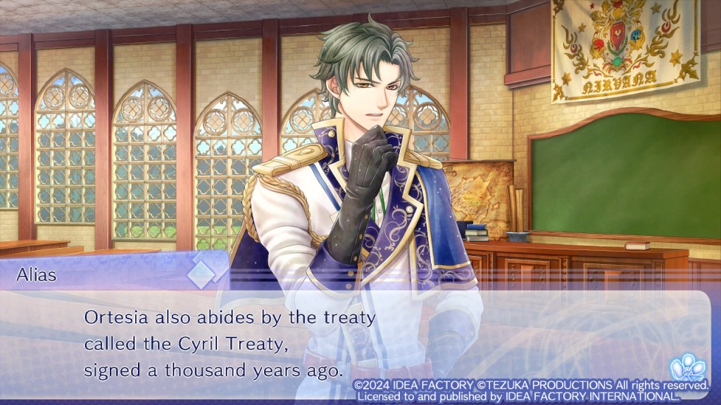 The common route lasts for 5 chapters before branching into the love interests’ routes. I appreciated the writers’ world-building efforts; we get to explore a few areas outside of the academy, and they give us some background on important historical events.