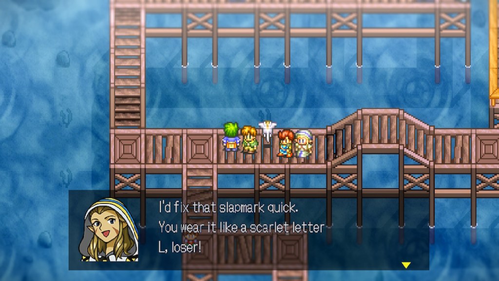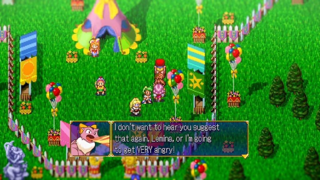 I really liked having 5 party members since I feel like the standard tends to be 4. (You can argue that Nall is a sixth battle participant, as he’ll hover in the background and occasionally revive a downed character.) The visuals and animations are charming; it was particularly amusing to see the character sprites when they were hit! They managed to inject so much personality into the tiny sprites.