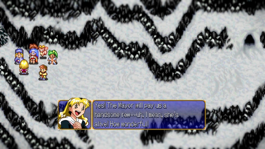 Lemina was one of my favorite characters with her (initial) obsession with money; those scenes made me laugh, but ultimately she, like the others, grows as a character. The interactions between Ronfar and Ruby were also amusing.