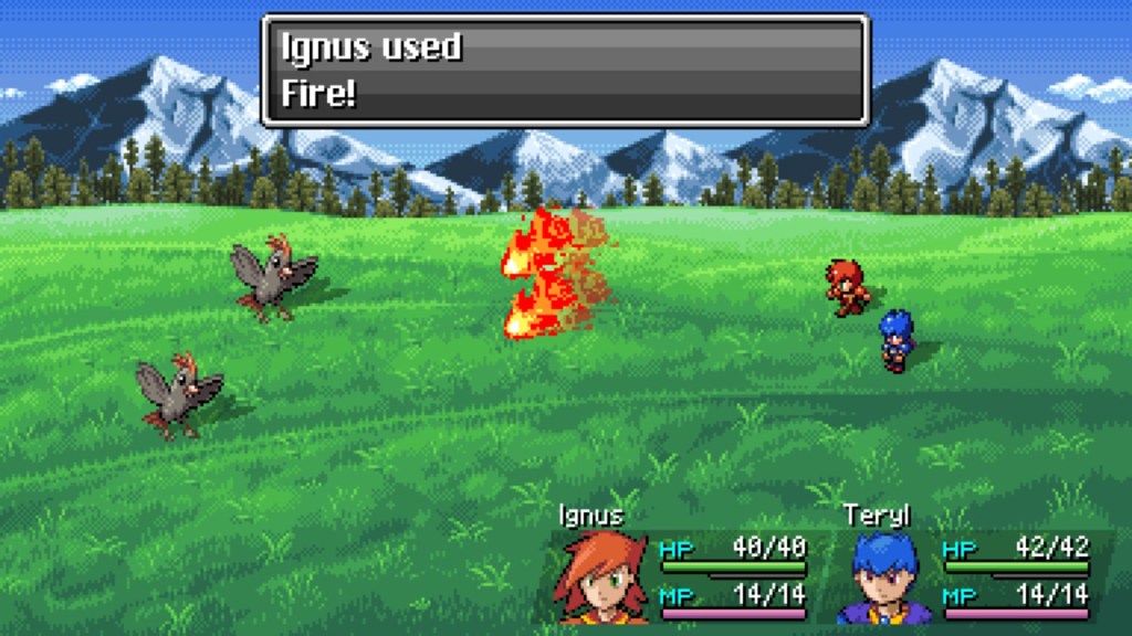 Enemies have elemental strengths and weaknesses, although the “elemental triangle” is quite simplistic: fire beats ice, ice beats earth, and earth beats fire. All enemies – including bosses – are susceptible to status ailments and debuffs. Due to the system’s simplicity I found myself keeping the same spells equipped for the majority of the game, and I would use the same moves over and over again.