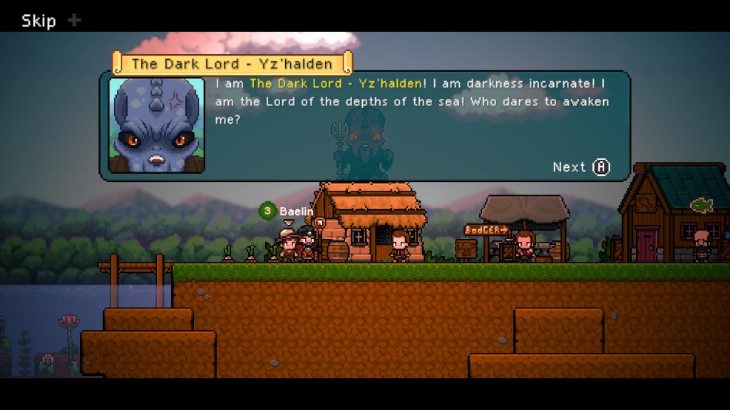 The game takes place in the World of Azerim, which seems to be a location in a MMORPG. One day someone accidentally frees a Dark Lord who’s been sealed away for thousands of years. He destroys the village of Honeywood, and all of the players have vanished; Baelin the fisherman NPC is turned into an Adventurer character to make up for their absence. Now he’s capable of accepting quests from the NPCs in his hometown of Honeywood.