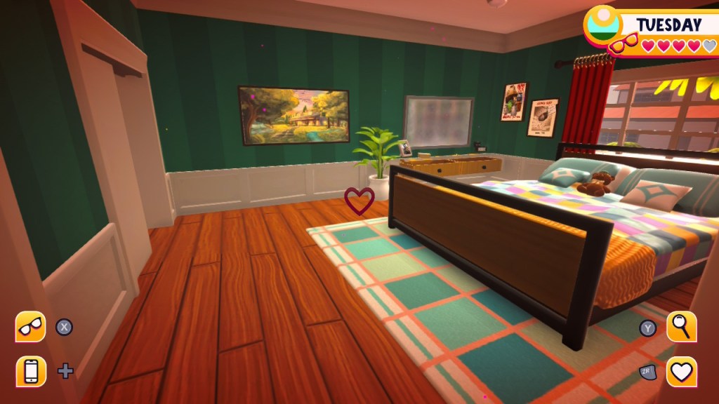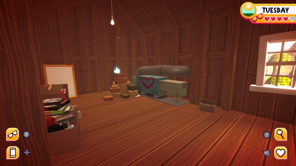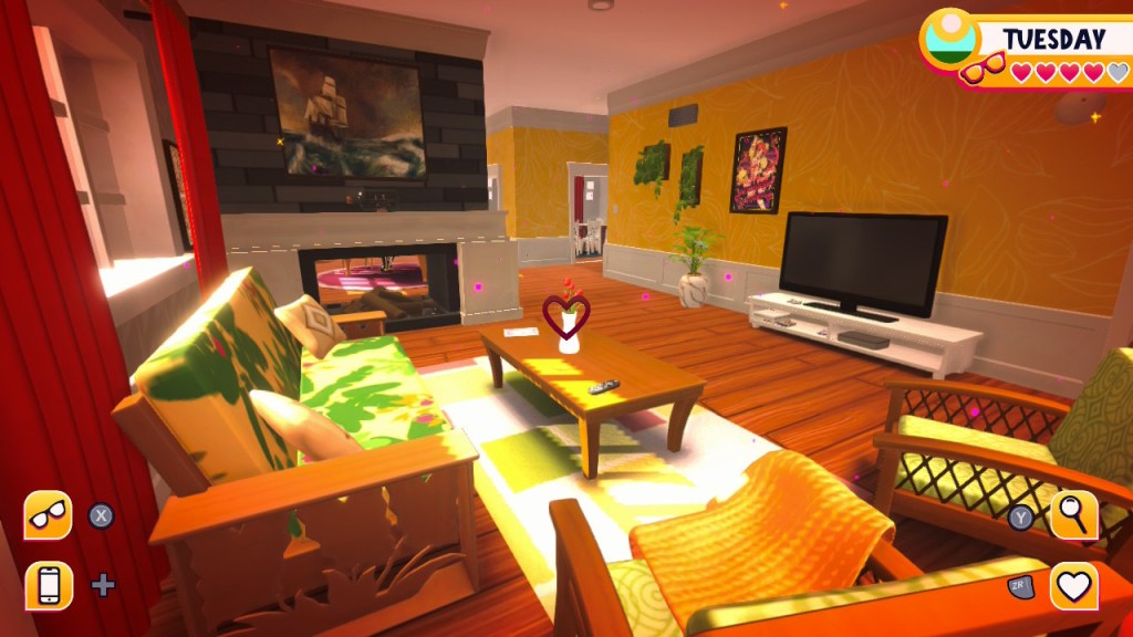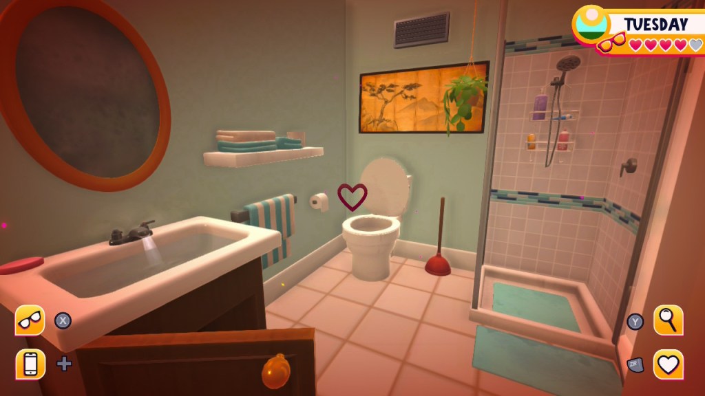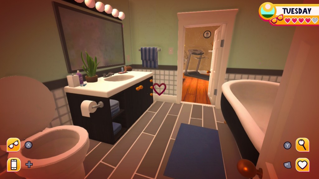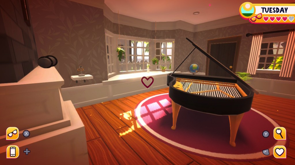 - Airyn: just outside of the office there’s a thermostat to the right of the door. With glasses off click on it and a freezing temperature icon should appear. At some point you should see air coming from the vents (I saw it in the bedroom). Talk to her and choose “…” responses until the point where you can ask if she’s falling in love with you to get love or friendship options