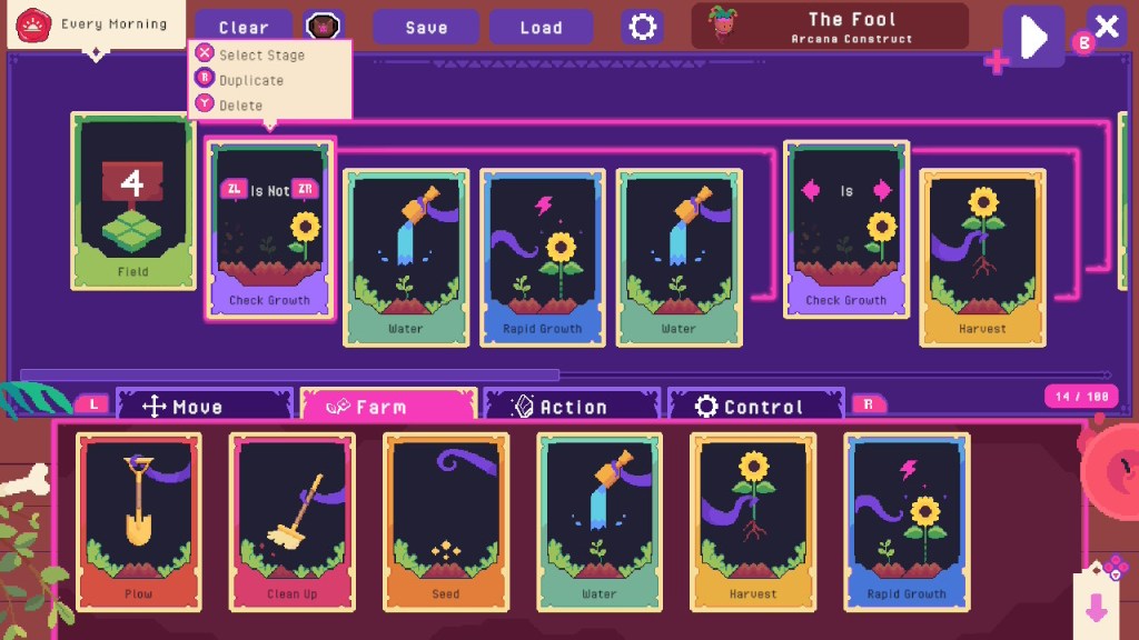 You have to manually activate the enchantment you’ve “programmed” into each Construct until you unlock Seals, which allow you to schedule automatic actions for a Construct to complete at the same time every day, or under a specific phase of the moon. There are also convenient field signs that allow Constructs to focus all their efforts on specific fields instead of requiring you to move them around manually.