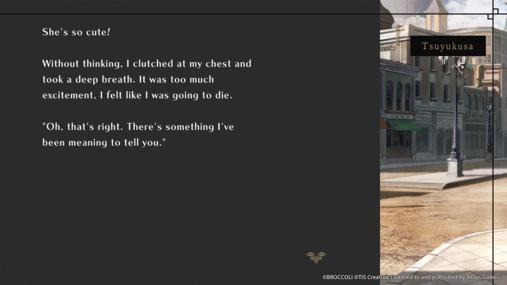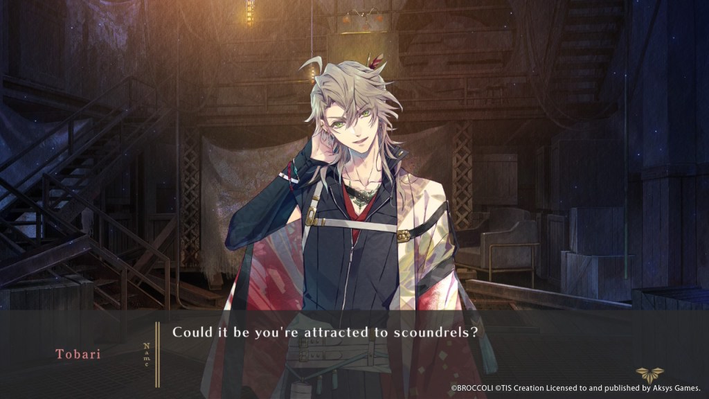 The writing has some other positive elements; for one thing, I appreciated how short the common route was compared to most other otome, as this only has the prologue and 2 common route chapters. This gives us more time with the love interests in their routes. There’s also new content in the prologue after playing through a new route, which I don’t remember seeing in an otome before.