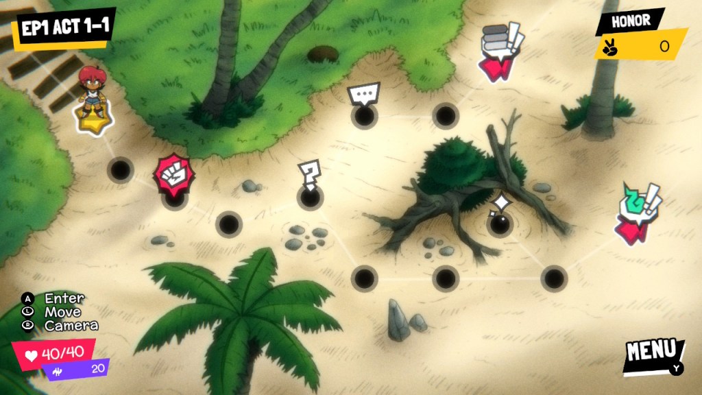 Ringo and Wolfe inevitably get into trouble everywhere they go, and they’ll have to fight their way out of it. Each episode consists of several maps, which are referred to as the “acts” of the episode (i.e. Episode 5, Act 2-1). There are multiple spaces on each map, which include battles, events (conversations), item acquisition, and more.