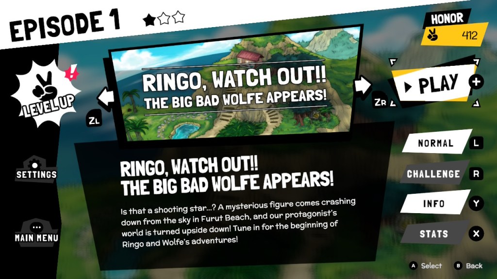 There are reasons to replay an episode for the sake of completion and also a challenge. To fully “complete” an episode you need to earn all 3 star medals by beating an episode in normal mode, clearing it in normal mode without being defeated, and completing an undefeated run in challenge mode. (Incidentally, the game also offers 3 difficulty levels for players to choose from before starting an episode. They affect the number of weaknesses Ringo has and the amount of honor earned in the episode.)