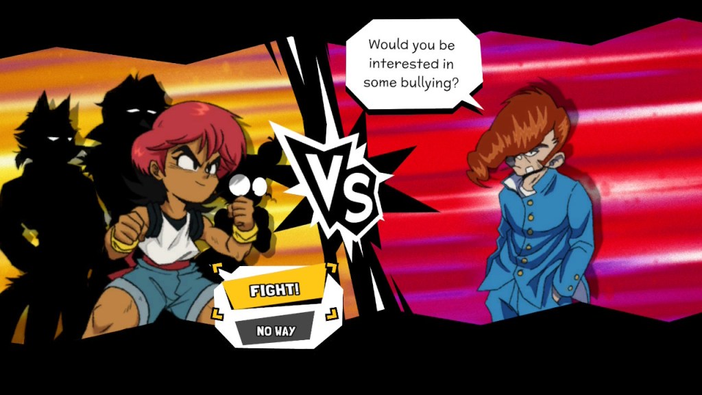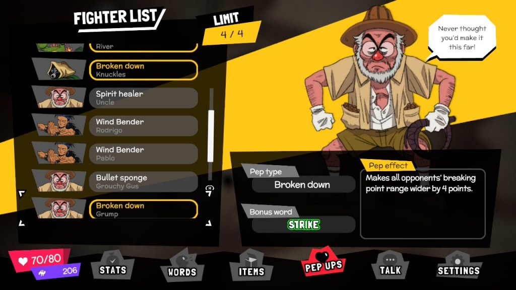 You can choose to go past opponents’ breaking points and knock them out – some without the broken heart icon require it – but it’s to your benefit to end battles peacefully instead because most opponents will offer you useful “Pep Up” passives to equip.