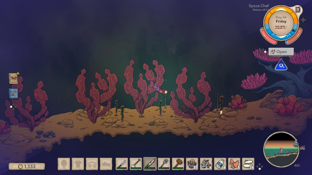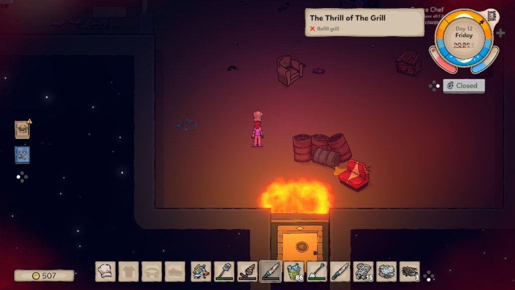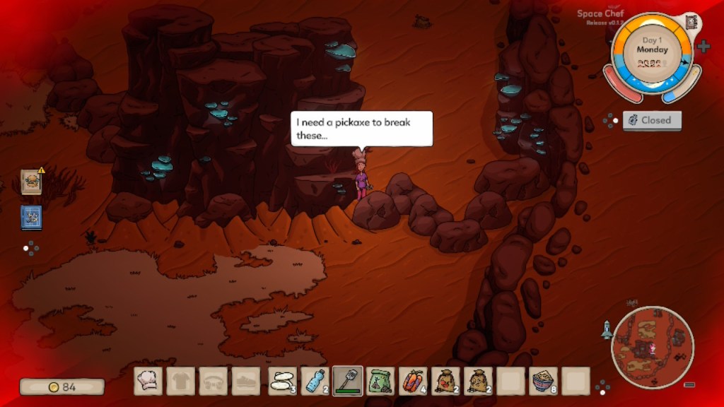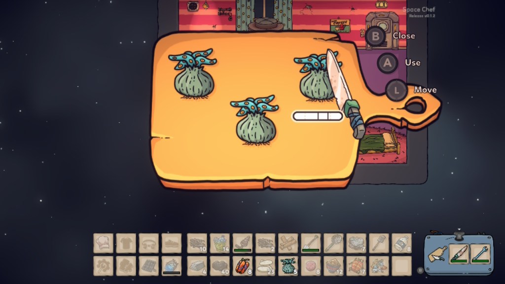 One of my biggest issues with Space Chef was that you have to remake a lot of equipment because they break or you lose them because you were defeated. Even if I managed to level up some stats and get ahead a little bit, I felt like I was always behind because I’d have to gather even more materials and process them – often spending limited funds to do so – to remake everything. Even major kitchen equipment such as the grill require maintenance/repair.