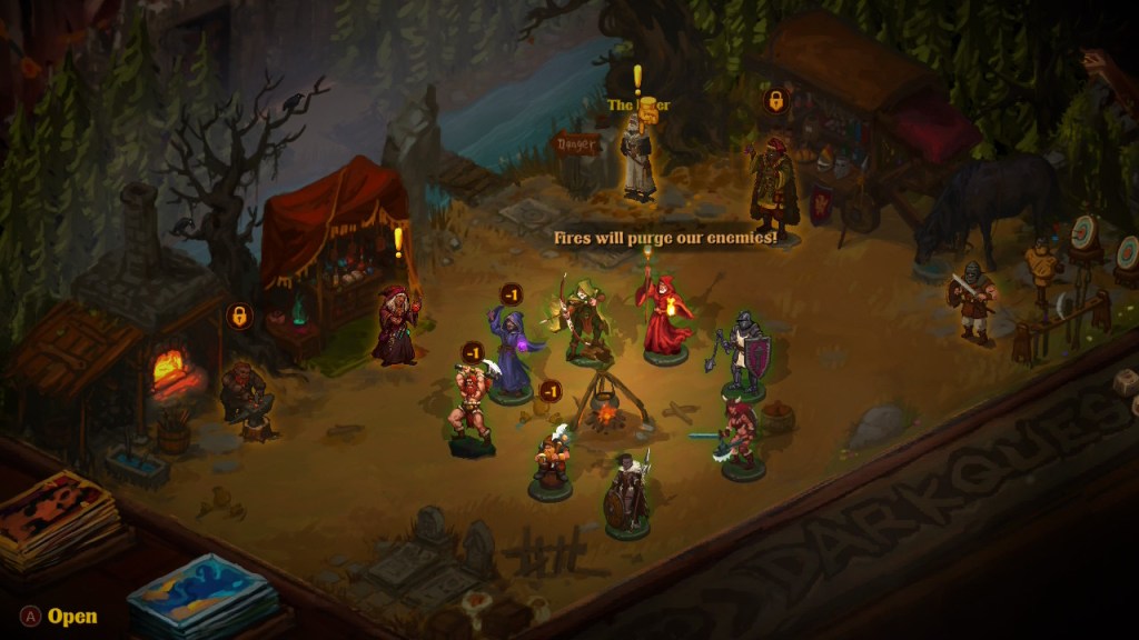 There are 10 heroes to use across 30 quests, so you can swap between them as needed based on their current conditions. Characters can get fatigued, which reduces their health if you take them on the next quest, so it’s best to leave them back at camp and take someone else until that condition goes away. Conversely, a unit can also be well-rested and have more HP than usual for a time.